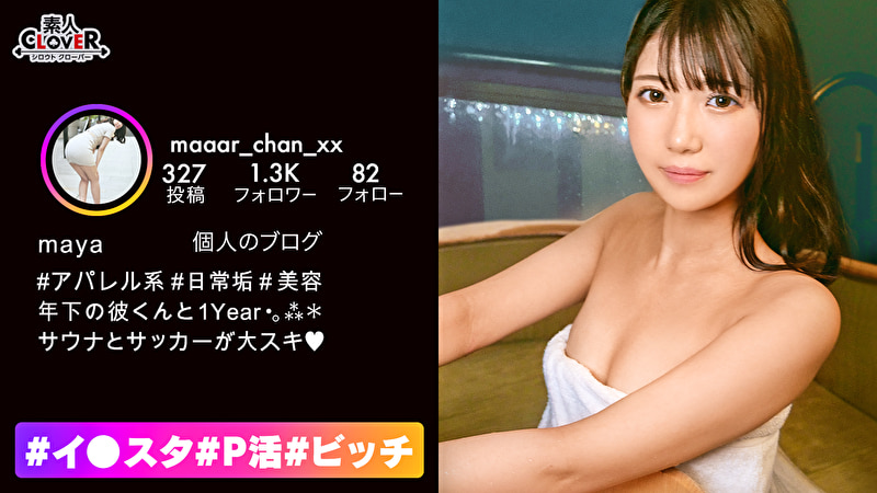 【毎日SEXが当たり前っ!?】エロ過ぎて経験人数が余裕で100人を超える絶倫美少女降臨!!止まらない潮吹きでびちょびしょになりながらも、腰を振りまくって感じまくりの激ピスSEX2連戦!!【♯イ○スタ♯P活♯ビッチ♯まや】|品番434735│素人CLOVER